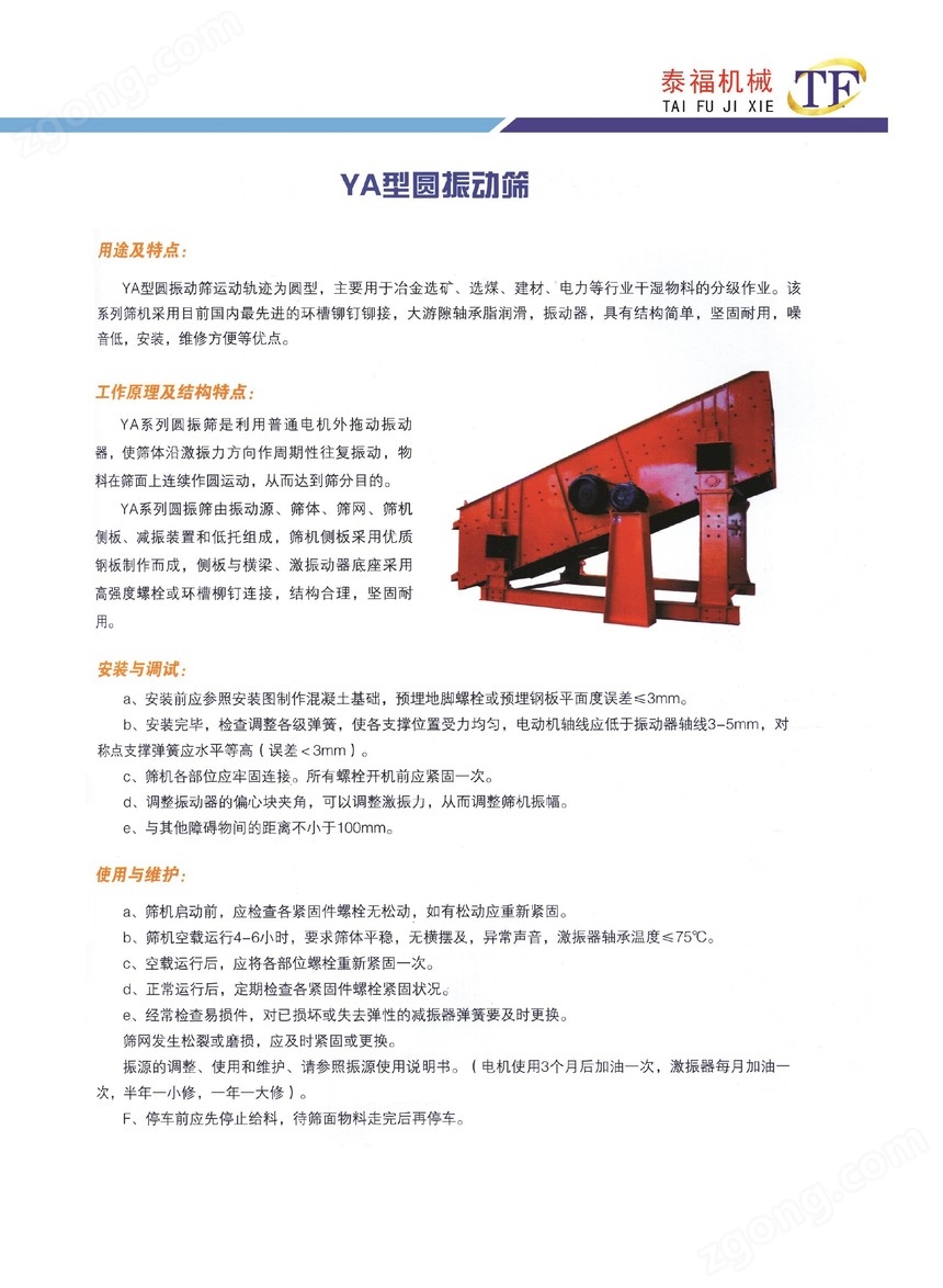 重工机械网>筛分机网>产品>YA型圆振动筛
