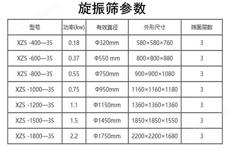 旋振筛以直立式振动电机作为激振源,电机上下两端安装有偏心重锤,将电机的旋转运动转变为水平、垂直、倾斜的三次元运动,再把这个运动传递给筛面进行筛分。调节上、下两端的相位角,可以改变物料在筛面上的运动轨迹,使物料根据不同筛分要求,经过 1-5 层不同目数的筛网,完成筛选或过滤。